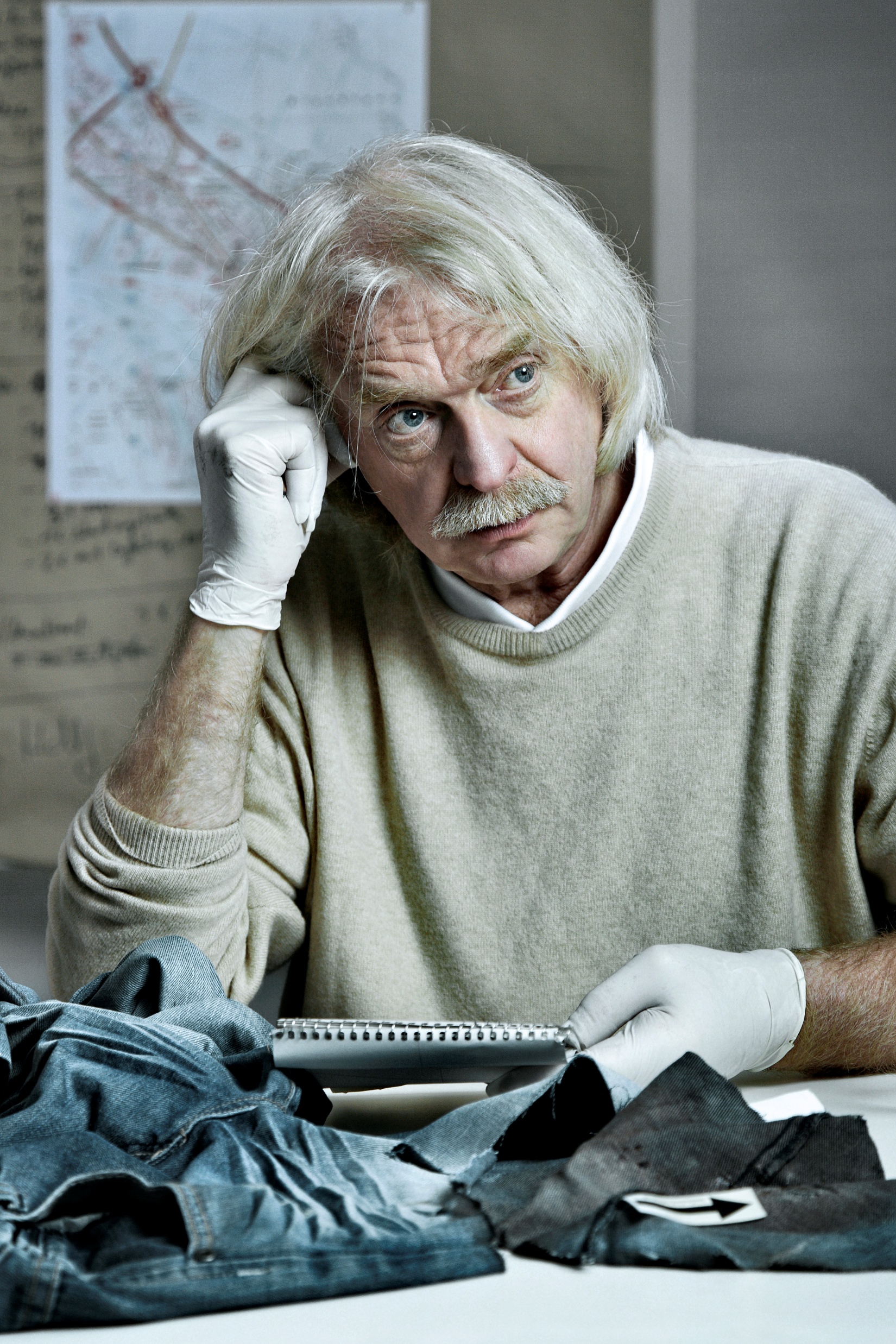 in seine Arbeit als Ermittler.